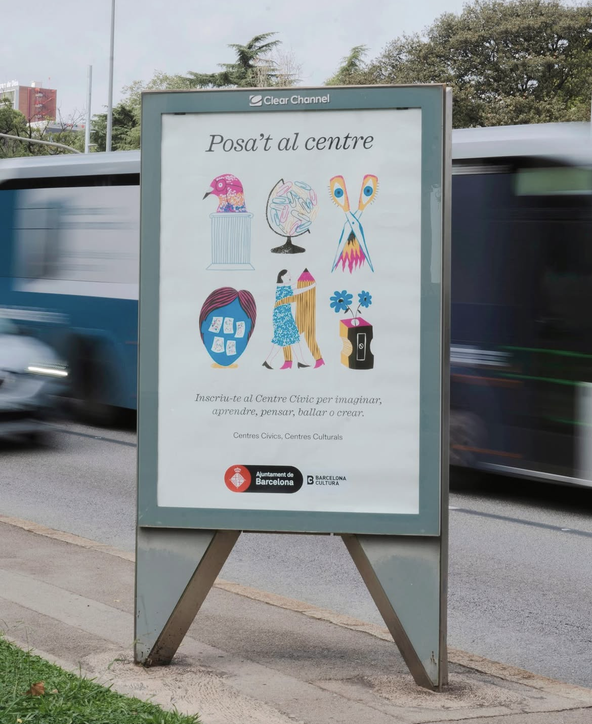 Concept and illustrations for the registration campaign for civic centers in Barcelona. The idea was to pay homage to office supplies and tools -essential instruments in the first steps of creation- by creating surreal and playful associations between them and the various activities offered at the centers.
